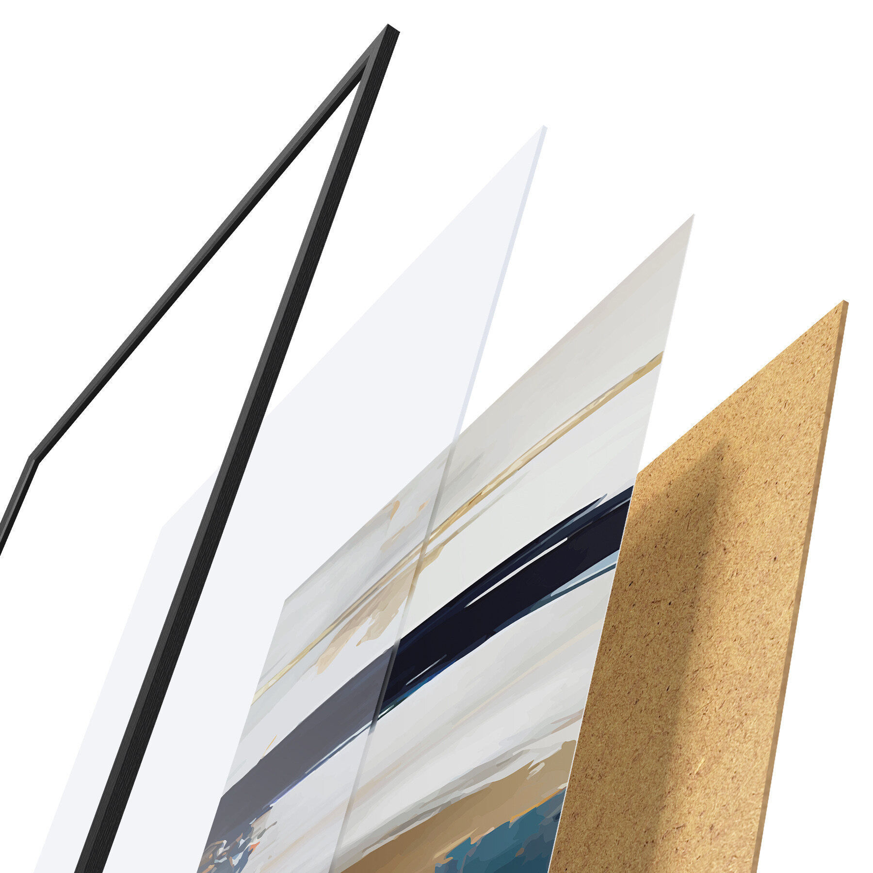 Das Poster besteht aus einem Rahmen, Plexiglas, einem gedruckten Bild und einer Rückwand aus Spanplatten. Dank der Halterungen auf der Rückseite kann das Poster sofort an die Wand gehängt werden.
