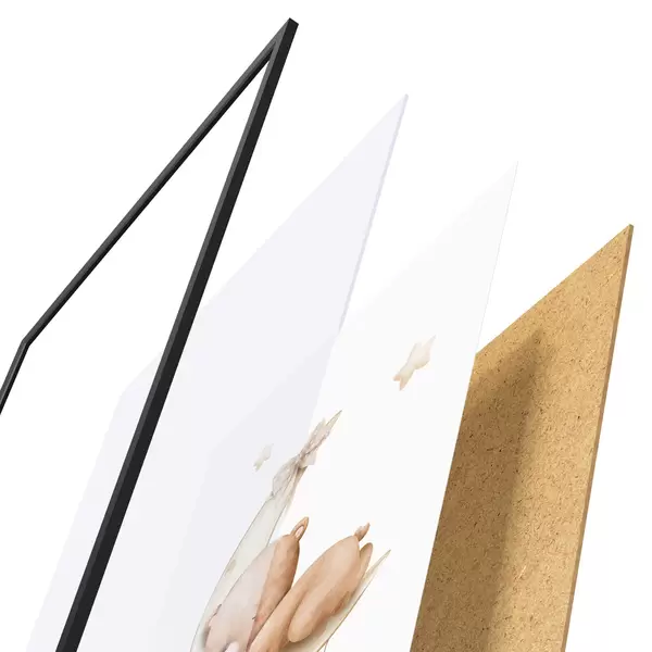 Das Poster besteht aus einem Rahmen, Plexiglas, einem gedruckten Bild und einer Rückwand aus Spanplatten. Dank der Halterungen auf der Rückseite kann das Poster sofort an die Wand gehängt werden.