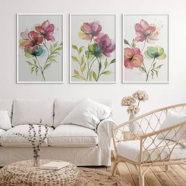 Poster Zarte Aquarellblumen mit Farbspritzern d00340