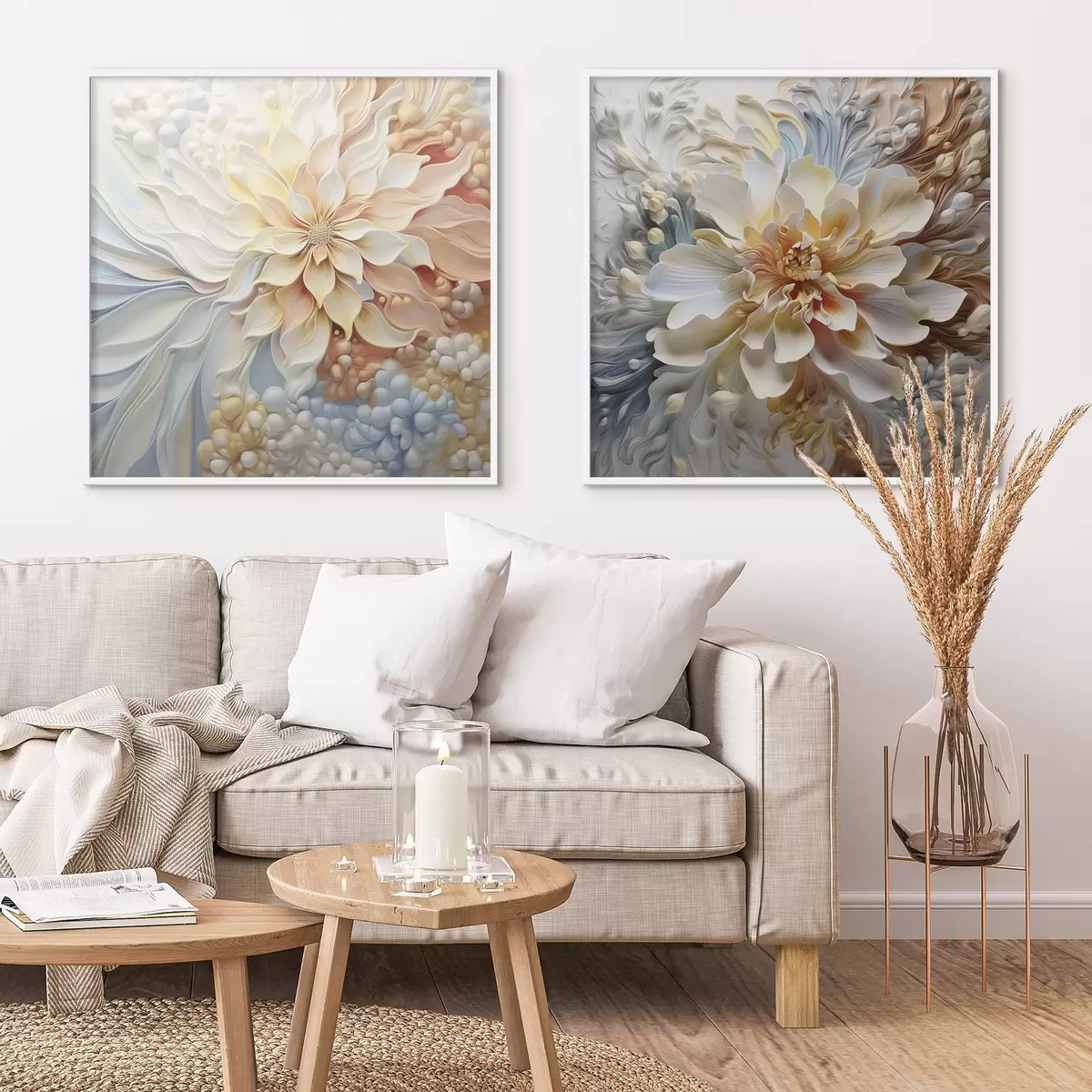 Drei Materialtypen stehen zur Verfügung: Economic Canvas - ein dichtes und haltbares Material für den Digitaldruck, identisch mit Malerleinwand, wasserfeste Oberfläche, realistische Wiedergabe von Details, mittelkörniges Material. Premium Canvas - die Textur ähnelt der einer Malerleinwand (verwobene kleine Fäden). Weiche, detaillierte Wiedergabe des Bildes auf einer matten Oberfläche. Eco-Premium - hochwertiges Gewebe aus 100% Baumwolle. Dank der natürlichen Baumwollfasern ist das Material langlebig und verschleißfest. Hervorragende Farbwiedergabe und Detailtreue.
