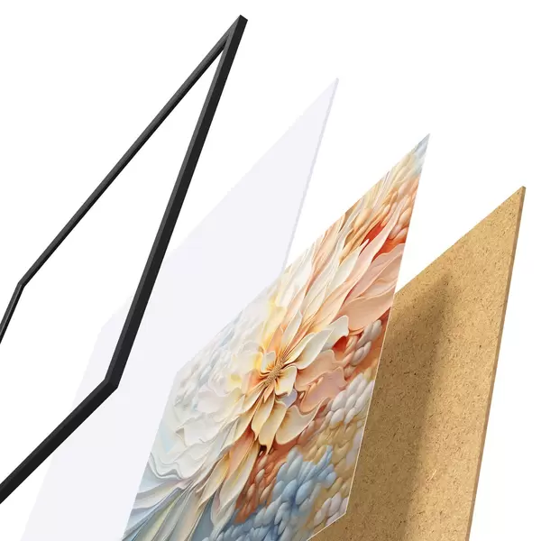 Das Poster besteht aus einem Rahmen, Plexiglas, einem gedruckten Bild und einer Rückwand aus Spanplatten. Dank der Halterungen auf der Rückseite kann das Poster sofort an die Wand gehängt werden.