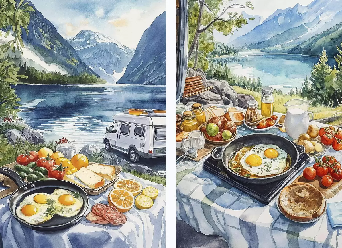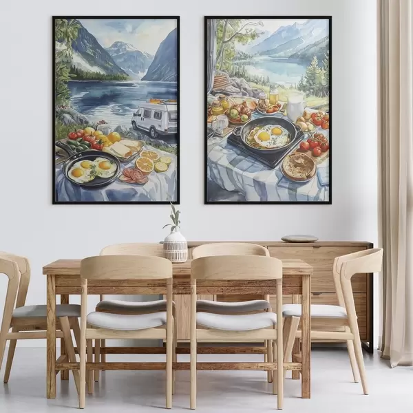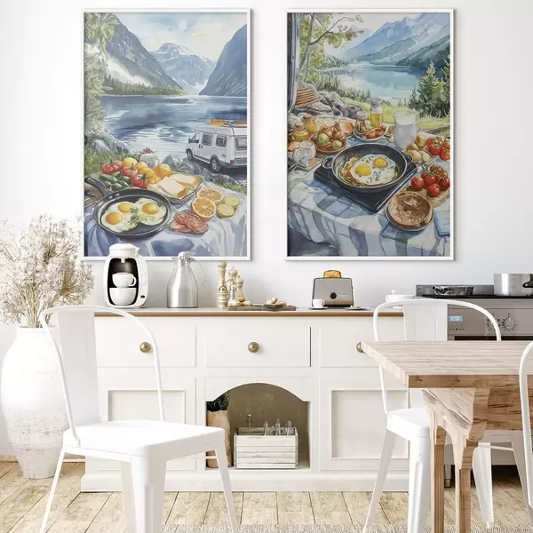 Poster Frühstück in der Natur, Reisen, Leben im Freien, Aquarellstil, Norwegen d00404