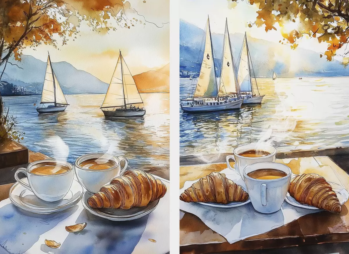 Poster Sonnenuntergang auf dem See mit Ups of Coffee, Segelboote, Natur, Reisen Nr d00407