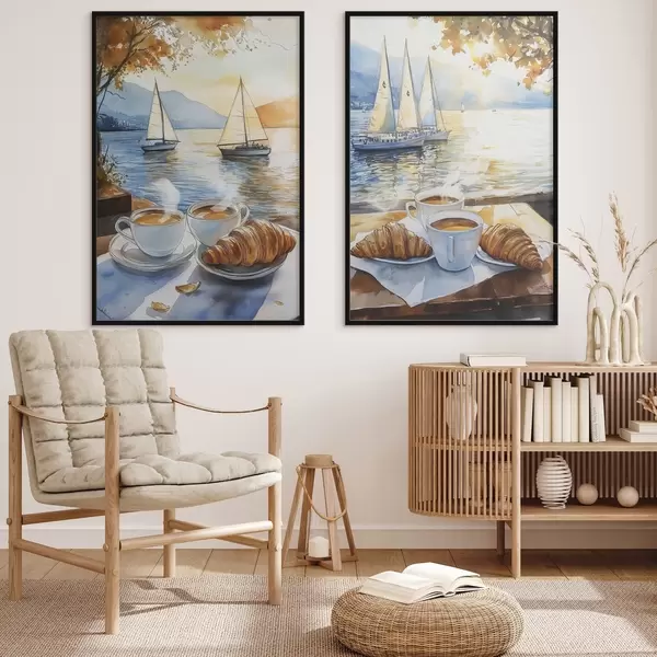 Poster Sonnenuntergang auf dem See mit Ups of Coffee, Segelboote, Natur, Reisen d00407