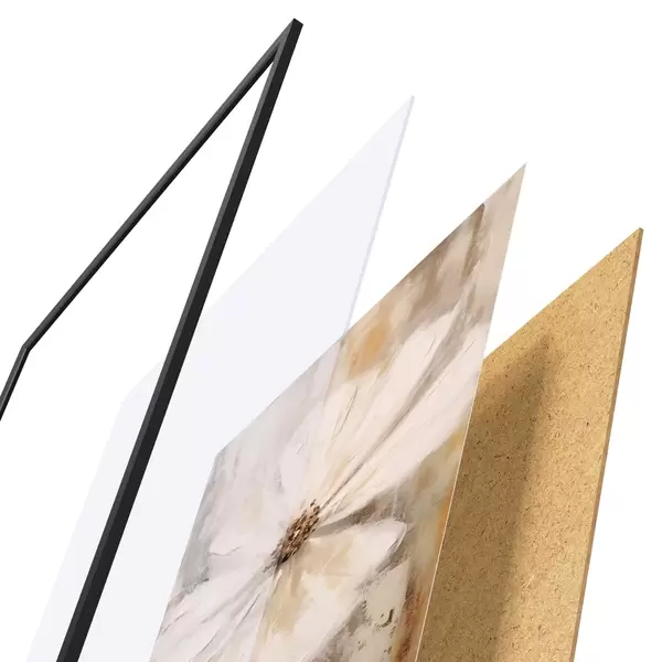 Das Poster besteht aus einem Rahmen, Plexiglas, einem gedruckten Bild und einer Rückwand aus Spanplatten. Dank der Halterungen auf der Rückseite kann das Poster sofort an die Wand gehängt werden.