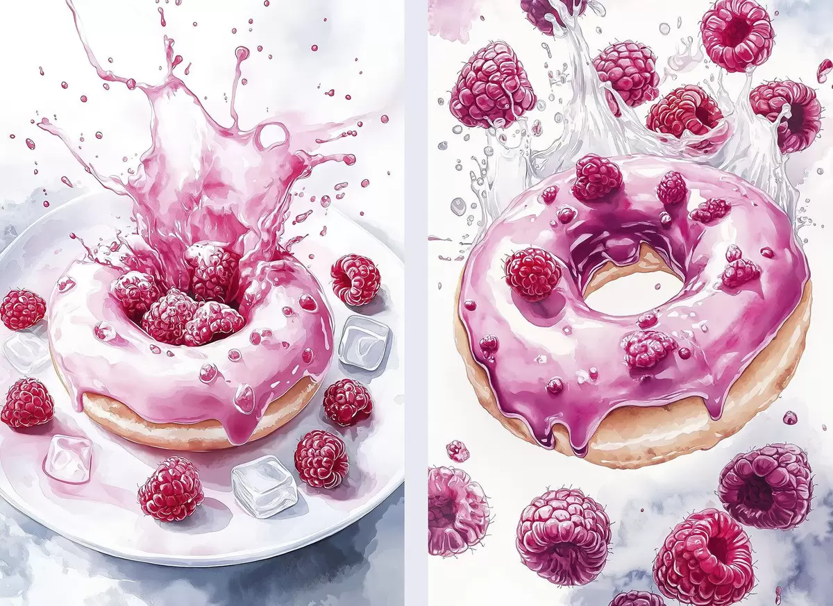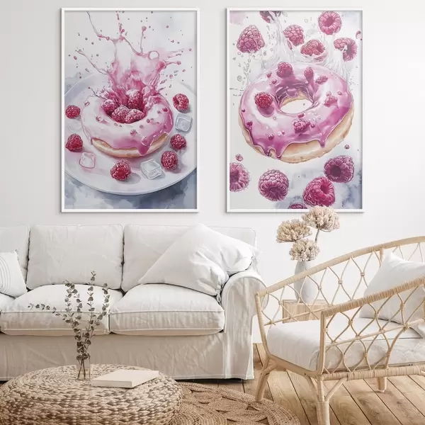 Poster Leckere Donuts im Aquarellstil mit Himbeeren, rosa Farben Nr d00412