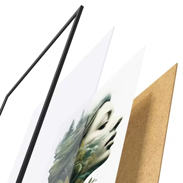 Das Poster besteht aus einem Rahmen, Plexiglas, einem gedruckten Bild und einer Rückwand aus Spanplatten. Dank der Halterungen auf der Rückseite kann das Poster sofort an die Wand gehängt werden.