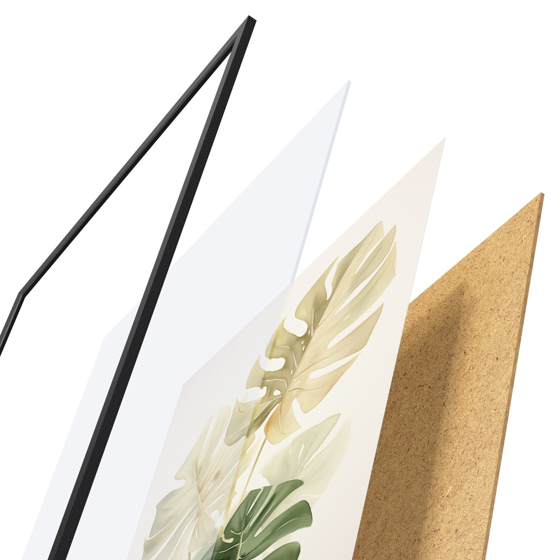 Das Poster besteht aus einem Rahmen, Plexiglas, einem gedruckten Bild und einer Rückwand aus Spanplatten. Dank der Halterungen auf der Rückseite kann das Poster sofort an die Wand gehängt werden.