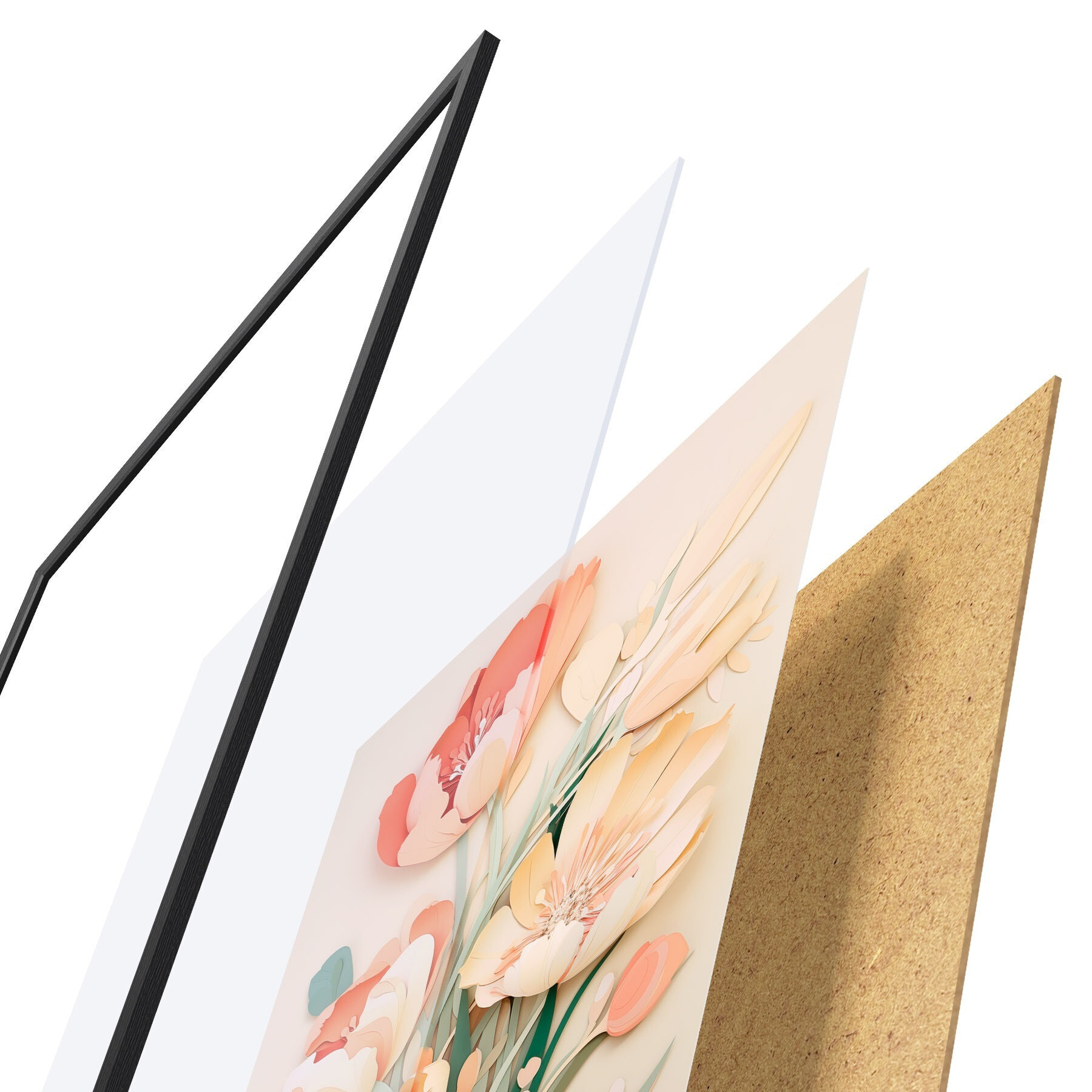 Das Poster besteht aus einem Rahmen, Plexiglas, einem gedruckten Bild und einer Rückwand aus Spanplatten. Dank der Halterungen auf der Rückseite kann das Poster sofort an die Wand gehängt werden.