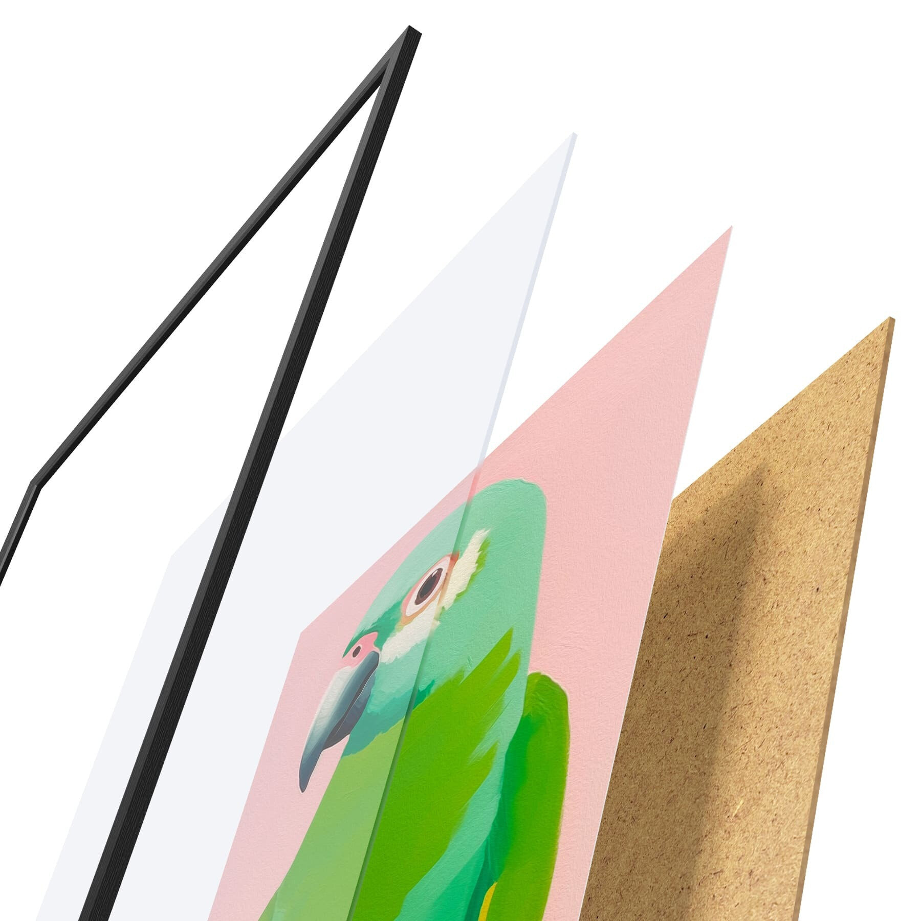 Das Poster besteht aus einem Rahmen, Plexiglas, einem gedruckten Bild und einer Rückwand aus Spanplatten. Dank der Halterungen auf der Rückseite kann das Poster sofort an die Wand gehängt werden.