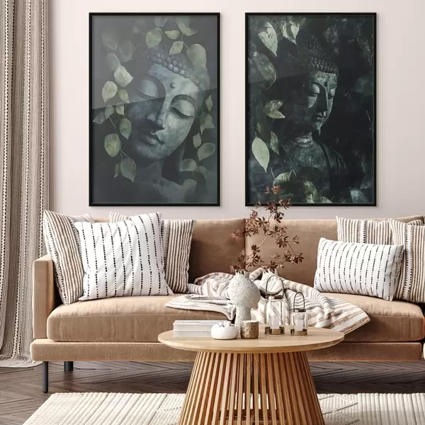 Poster Grüner Buddha in tropischen Blättern, Aquarellstil d00451