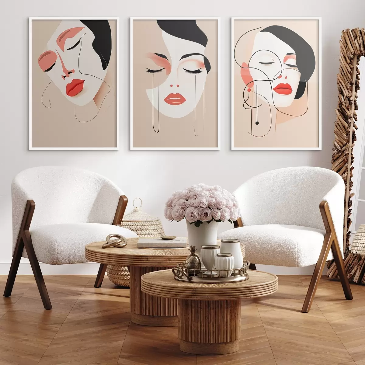 Poster Harmonie, drei Gesichter, leuchtende Farben Nr d00454