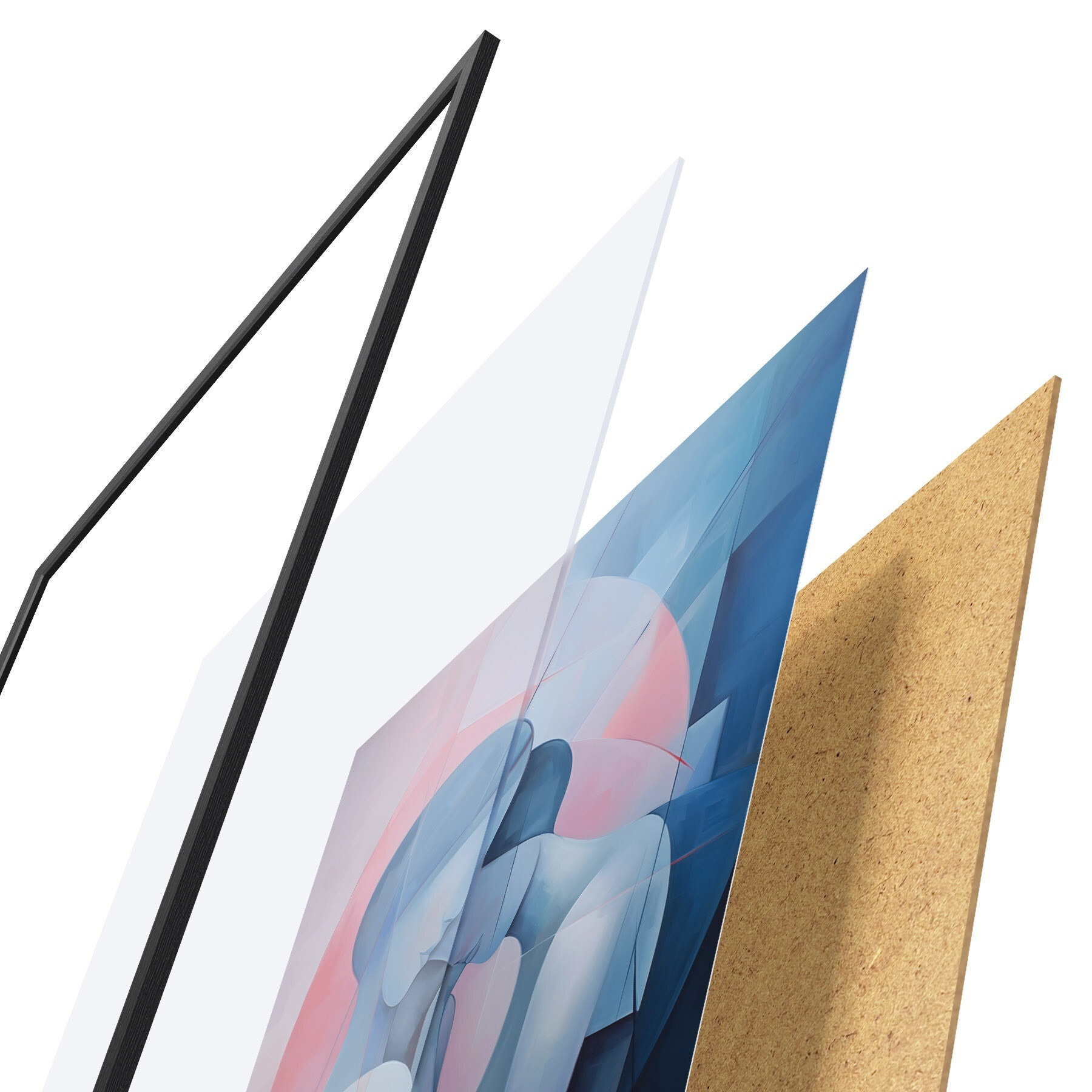 Das Poster besteht aus einem Rahmen, Plexiglas, einem gedruckten Bild und einer Rückwand aus Spanplatten. Dank der Halterungen auf der Rückseite kann das Poster sofort an die Wand gehängt werden.