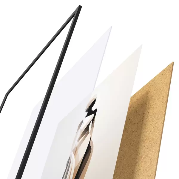 Das Poster besteht aus einem Rahmen, Plexiglas, einem gedruckten Bild und einer Rückwand aus Spanplatten. Dank der Halterungen auf der Rückseite kann das Poster sofort an die Wand gehängt werden.