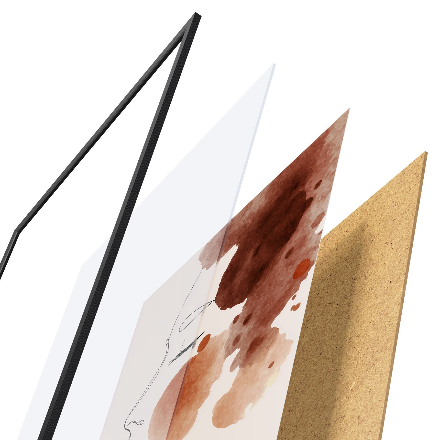 Das Poster besteht aus einem Rahmen, Plexiglas, einem gedruckten Bild und einer Rückwand aus Spanplatten. Dank der Halterungen auf der Rückseite kann das Poster sofort an die Wand gehängt werden.