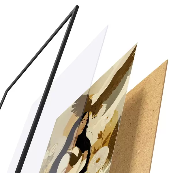 Das Poster besteht aus einem Rahmen, Plexiglas, einem gedruckten Bild und einer Rückwand aus Spanplatten. Dank der Halterungen auf der Rückseite kann das Poster sofort an die Wand gehängt werden.