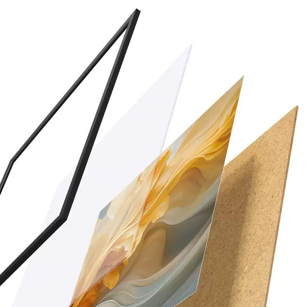Das Poster besteht aus einem Rahmen, Plexiglas, einem gedruckten Bild und einer Rückwand aus Spanplatten. Dank der Halterungen auf der Rückseite kann das Poster sofort an die Wand gehängt werden.