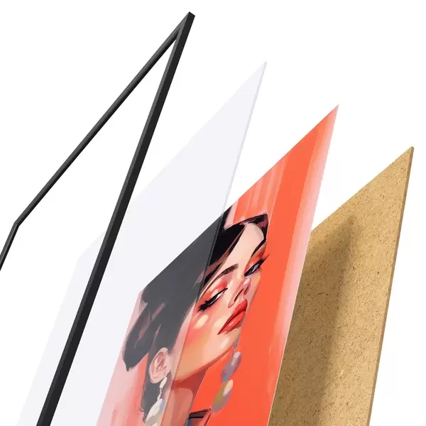 Das Poster besteht aus einem Rahmen, Plexiglas, einem gedruckten Bild und einer Rückwand aus Spanplatten. Dank der Halterungen auf der Rückseite kann das Poster sofort an die Wand gehängt werden.