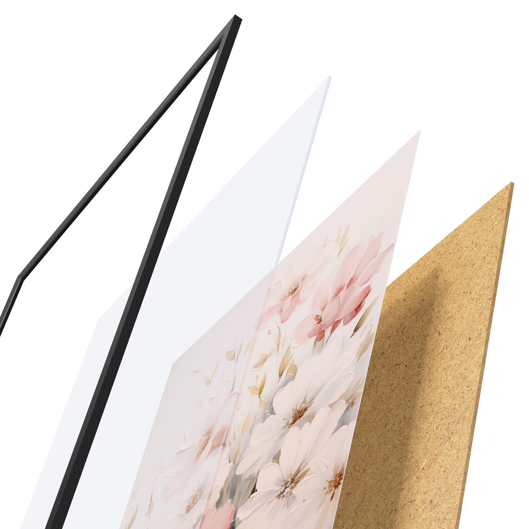 Das Poster besteht aus einem Rahmen, Plexiglas, einem gedruckten Bild und einer Rückwand aus Spanplatten. Dank der Halterungen auf der Rückseite kann das Poster sofort an die Wand gehängt werden.