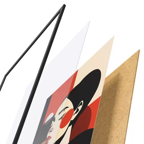 Das Poster besteht aus einem Rahmen, Plexiglas, einem gedruckten Bild und einer Rückwand aus Spanplatten. Dank der Halterungen auf der Rückseite kann das Poster sofort an die Wand gehängt werden.