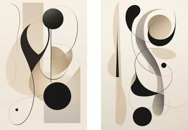 Poster Abstrakte Komposition mit Kurven und Formen Nr d00538