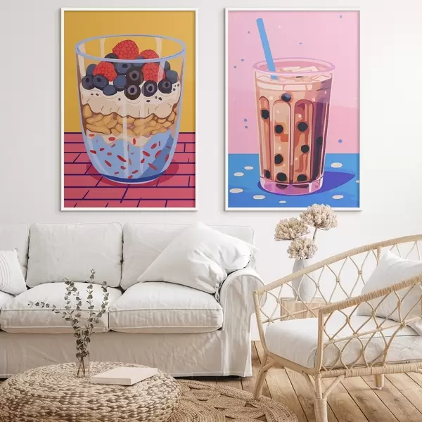 Poster Sprudeltee und Müsli mit Obst Nr d00545