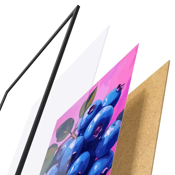 Das Poster besteht aus einem Rahmen, Plexiglas, einem gedruckten Bild und einer Rückwand aus Spanplatten. Dank der Halterungen auf der Rückseite kann das Poster sofort an die Wand gehängt werden.