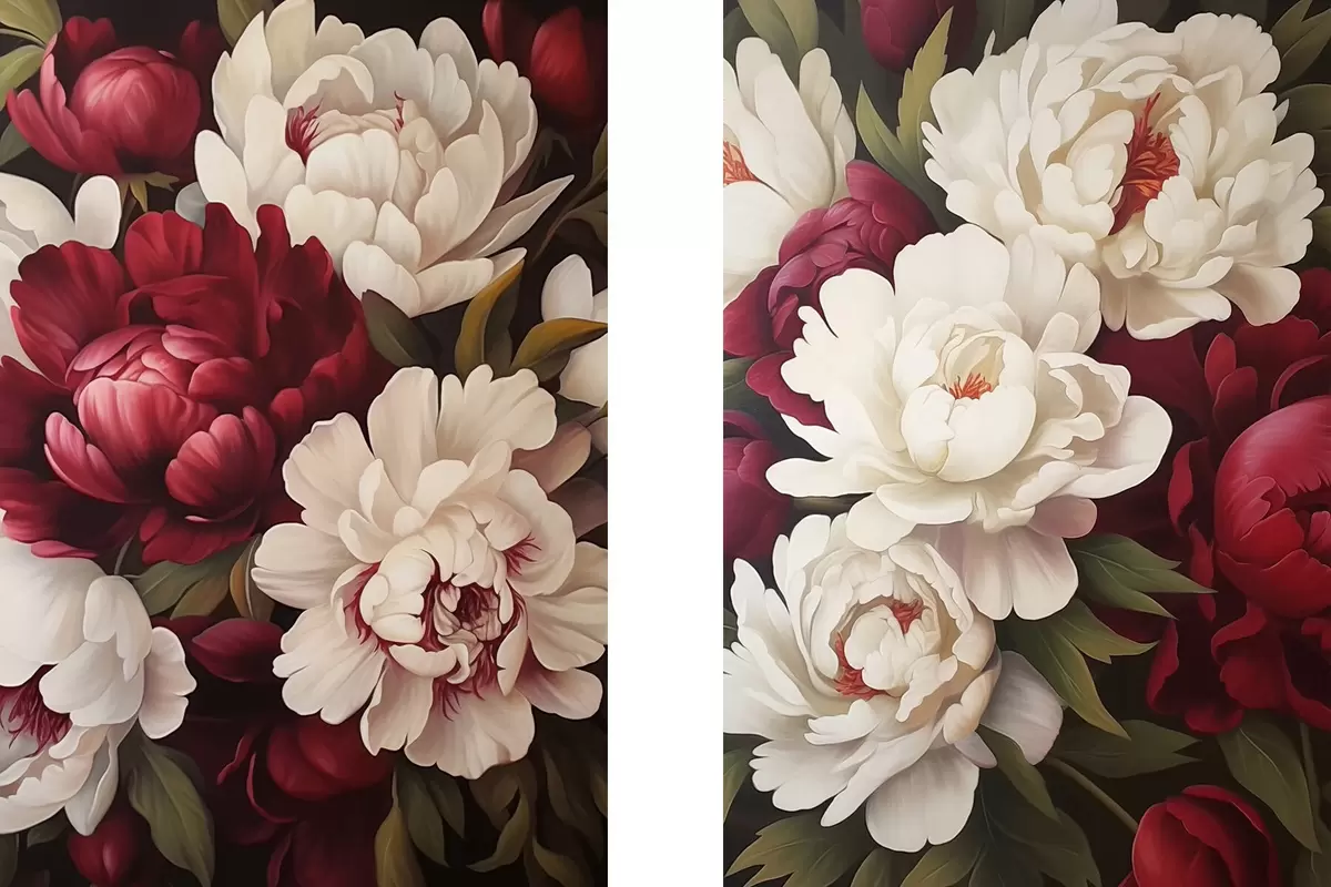 Drei Materialtypen stehen zur Verfügung: Economic Canvas - ein dichtes und haltbares Material für den Digitaldruck, identisch mit Malerleinwand, wasserfeste Oberfläche, realistische Wiedergabe von Details, mittelkörniges Material. Premium Canvas - die Textur ähnelt der einer Malerleinwand (verwobene kleine Fäden). Weiche, detaillierte Wiedergabe des Bildes auf einer matten Oberfläche. Eco-Premium - hochwertiges Gewebe aus 100% Baumwolle. Dank der natürlichen Baumwollfasern ist das Material langlebig und verschleißfest. Hervorragende Farbwiedergabe und Detailtreue.