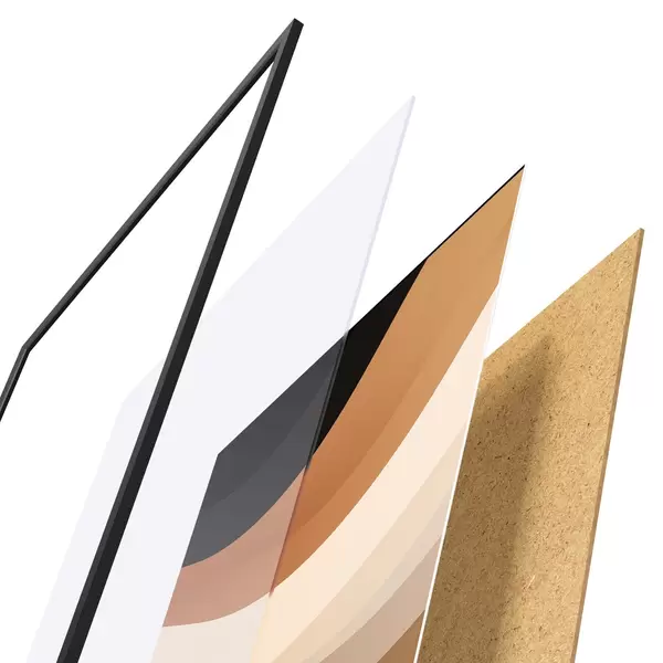 Das Poster besteht aus einem Rahmen, Plexiglas, einem gedruckten Bild und einer Rückwand aus Spanplatten. Dank der Halterungen auf der Rückseite kann das Poster sofort an die Wand gehängt werden.