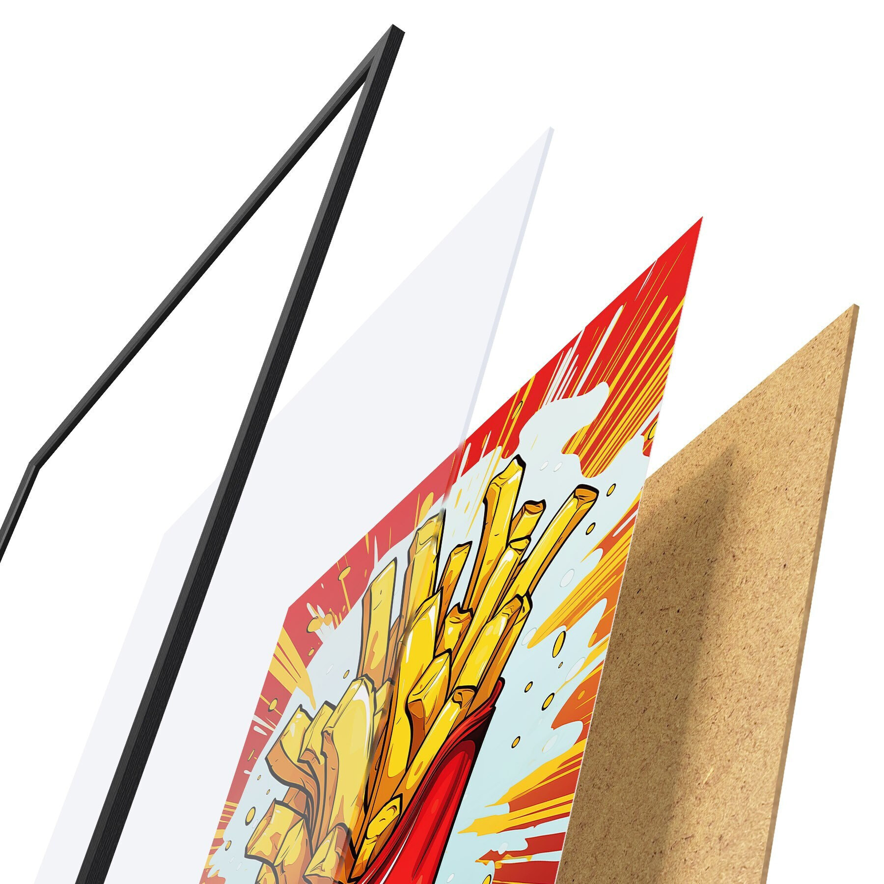 Das Poster besteht aus einem Rahmen, Plexiglas, einem gedruckten Bild und einer Rückwand aus Spanplatten. Dank der Halterungen auf der Rückseite kann das Poster sofort an die Wand gehängt werden.