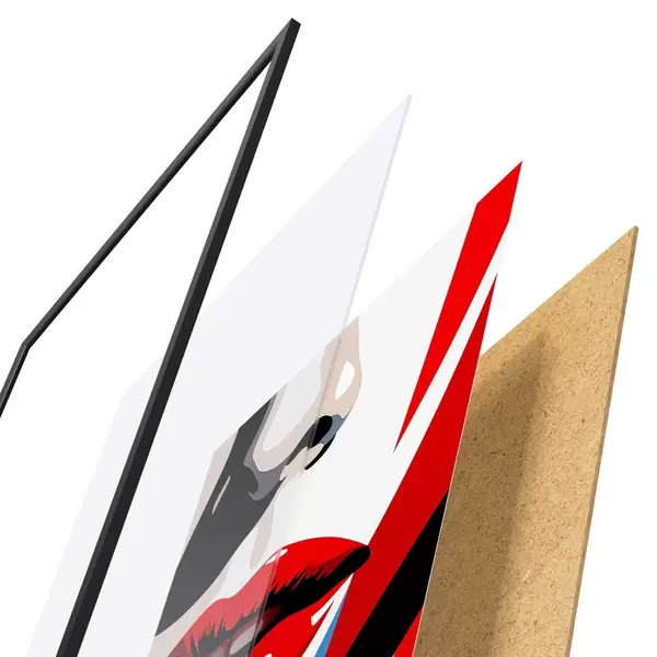Das Poster besteht aus einem Rahmen, Plexiglas, einem gedruckten Bild und einer Rückwand aus Spanplatten. Dank der Halterungen auf der Rückseite kann das Poster sofort an die Wand gehängt werden.