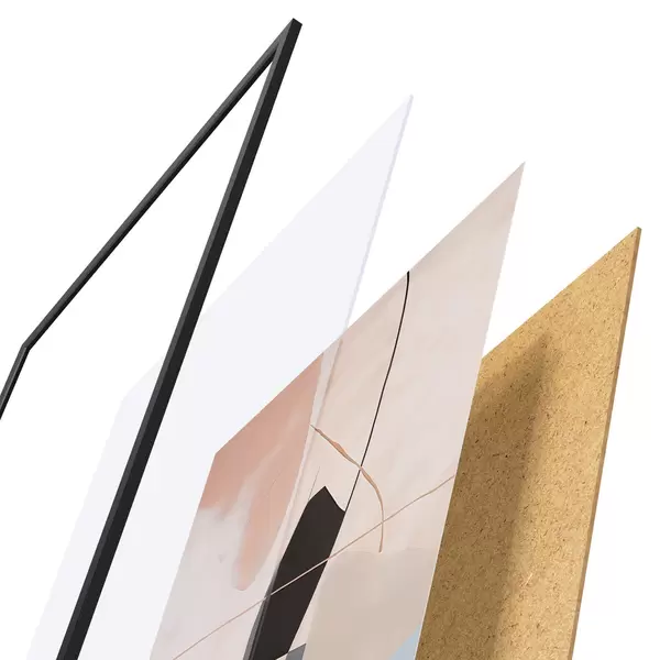 Das Poster besteht aus einem Rahmen, Plexiglas, einem gedruckten Bild und einer Rückwand aus Spanplatten. Dank der Halterungen auf der Rückseite kann das Poster sofort an die Wand gehängt werden.