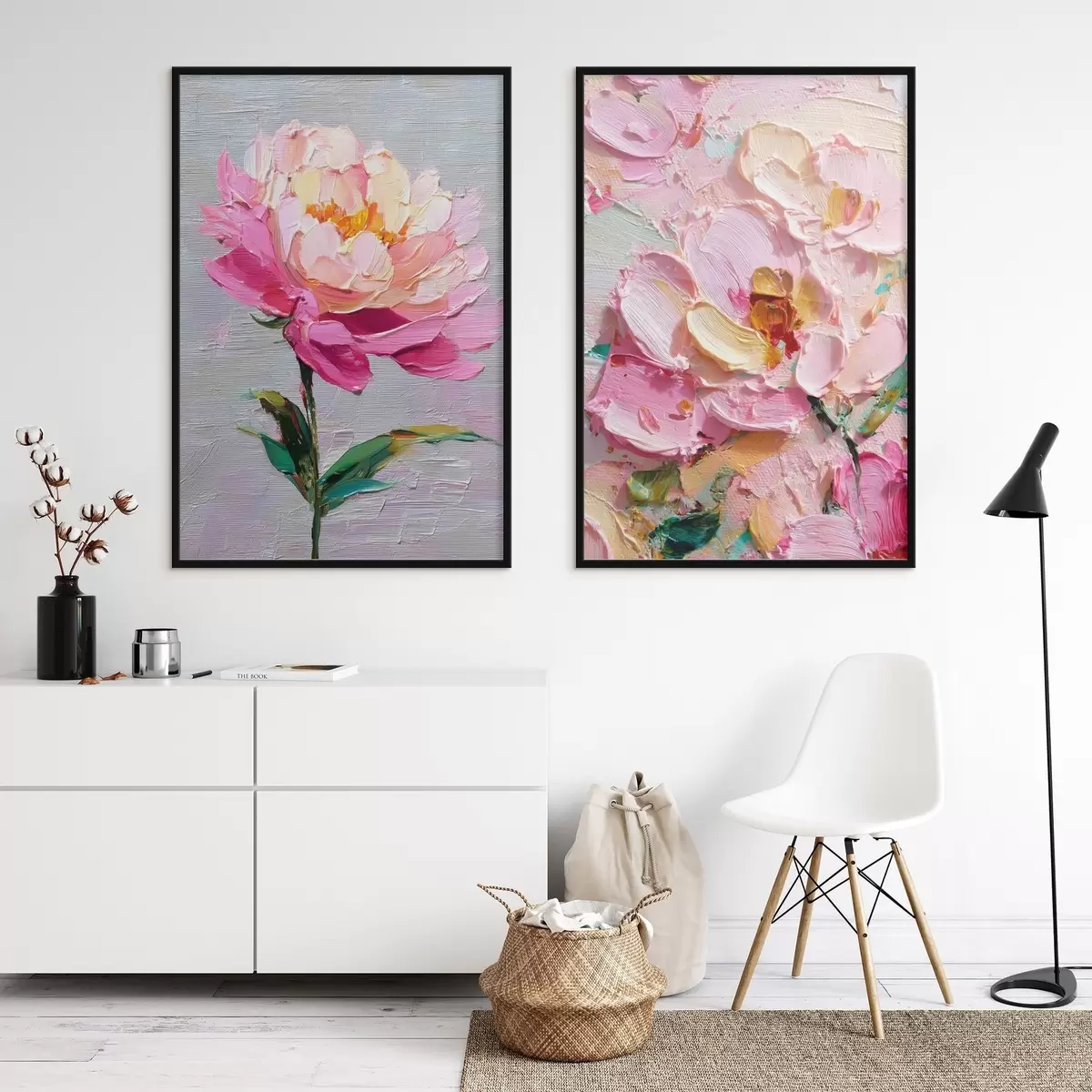 Poster Moderne Kunst mit rosa Blumen in volumetrischer Technik Nr d00572