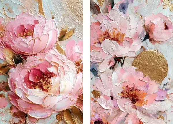 Poster Volumetrische Impasto-Malerei mit rosa Pfingstrosen und strukturierten Details d00573