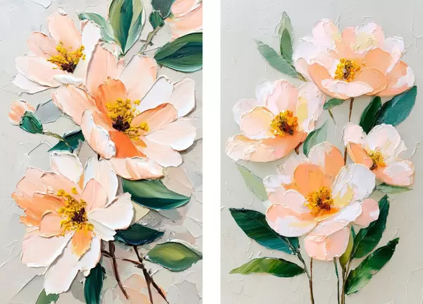 Poster Impasto-Malerei, die einen großen Blumenstrauß und einzelne Blumen kombiniert d00579