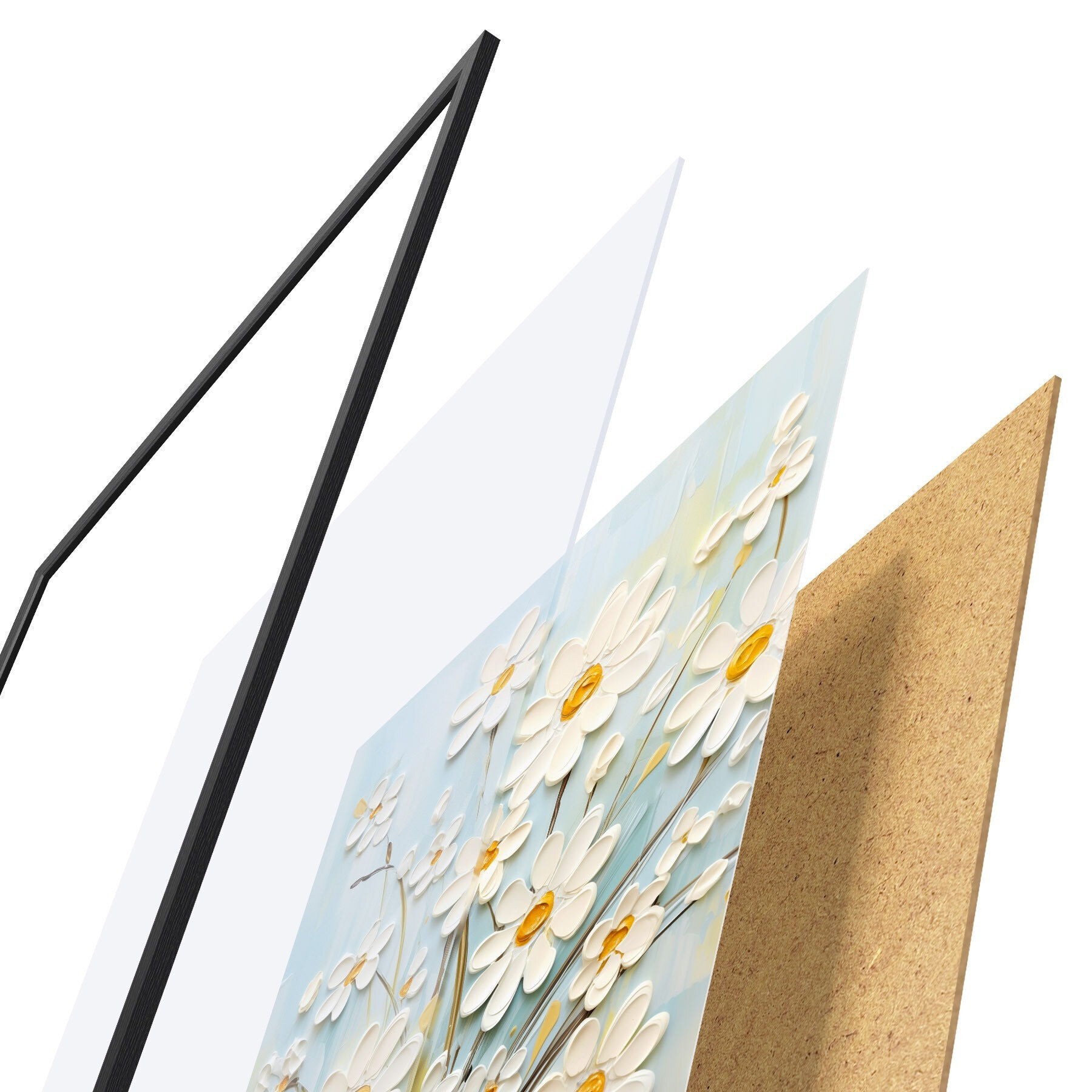 Poster Sonnige Blumen: Kunstduett mit volumetrischen Gänseblümchen und gelben Akzenten Nr d00580
