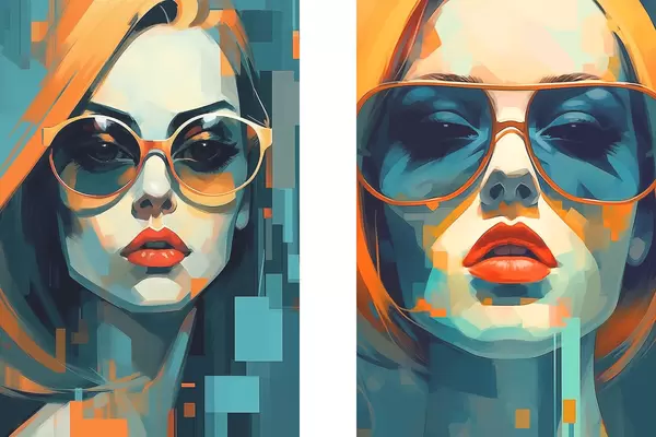Poster Frauenporträts mit Brille im Stil der digitalen Abstraktion d00587