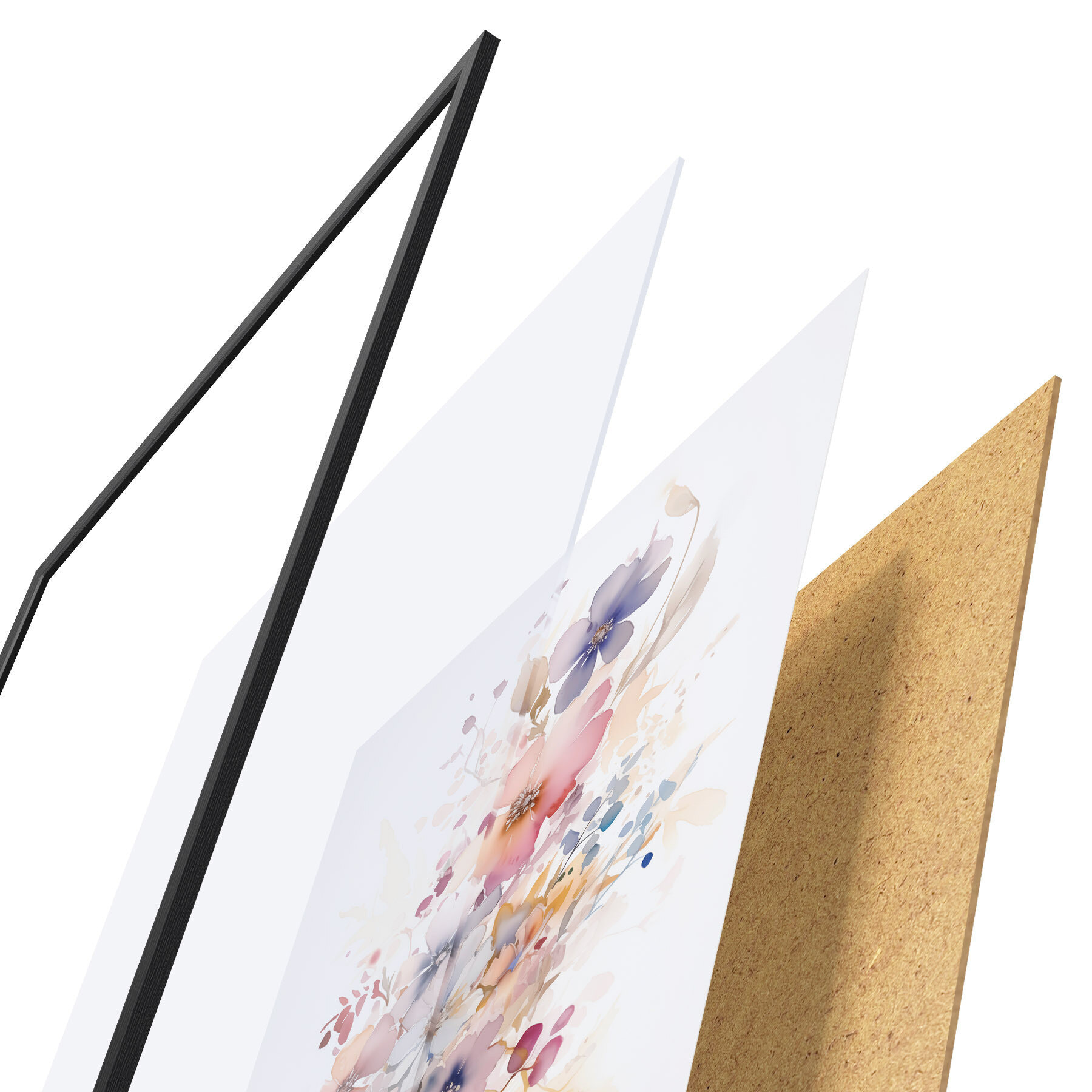 Das Poster besteht aus einem Rahmen, Plexiglas, einem gedruckten Bild und einer Rückwand aus Spanplatten. Dank der Halterungen auf der Rückseite kann das Poster sofort an die Wand gehängt werden.