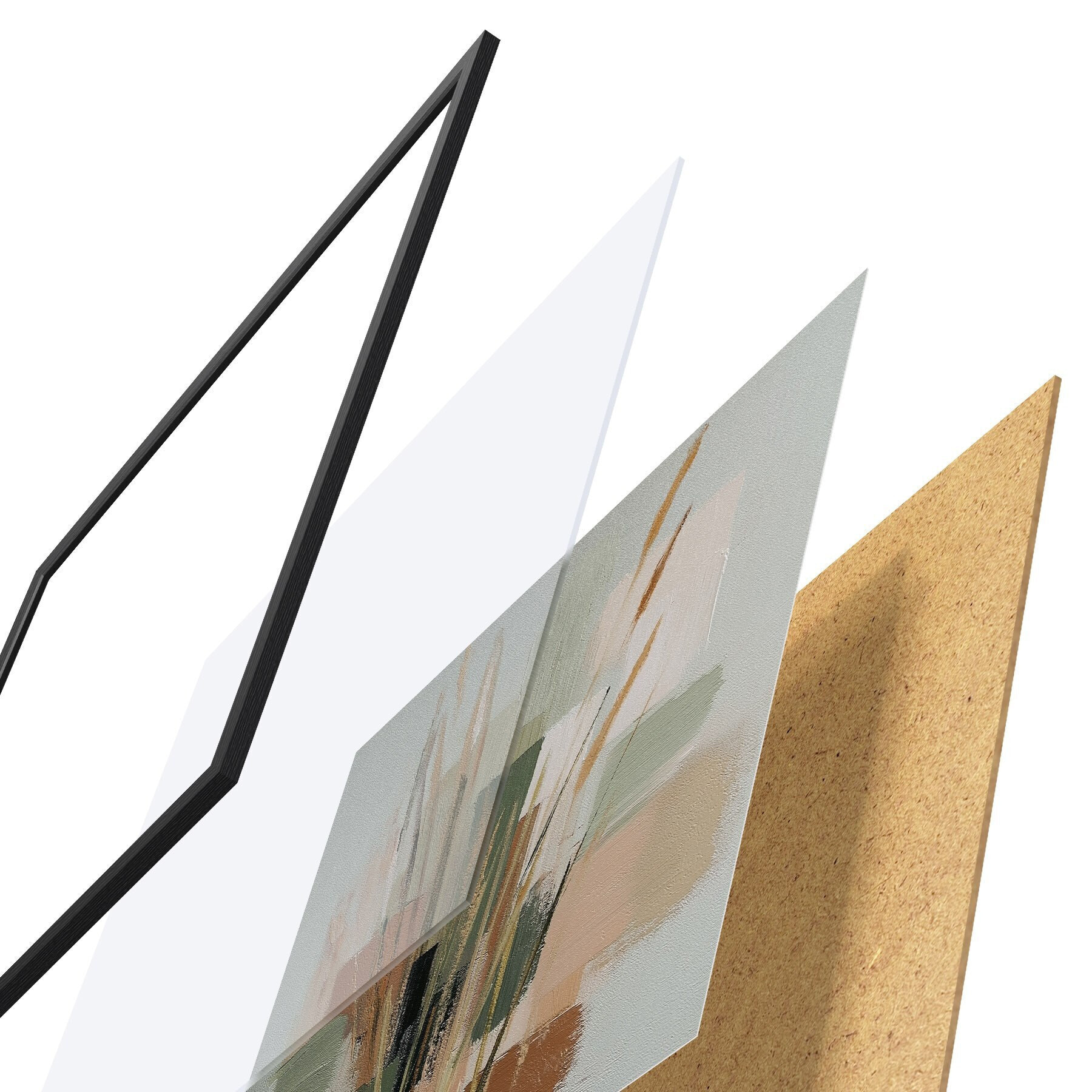 Das Poster besteht aus einem Rahmen, Plexiglas, einem gedruckten Bild und einer Rückwand aus Spanplatten. Dank der Halterungen auf der Rückseite kann das Poster sofort an die Wand gehängt werden.