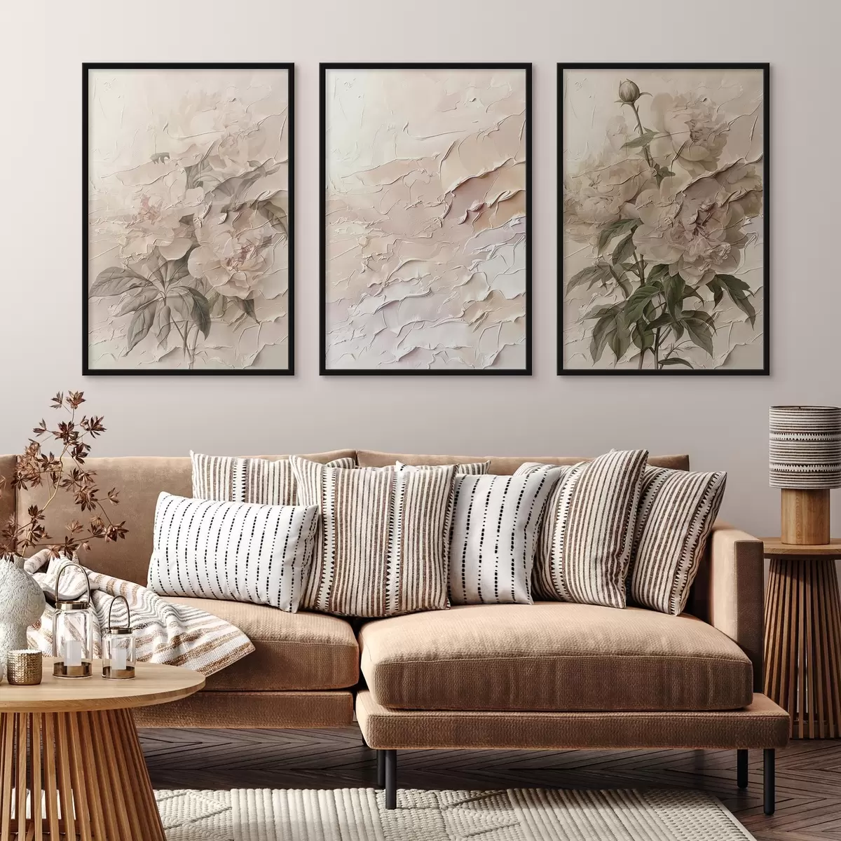 Poster Blumenstrauß aus Pfingstrosen und Pinselstrich-Effekt d00616