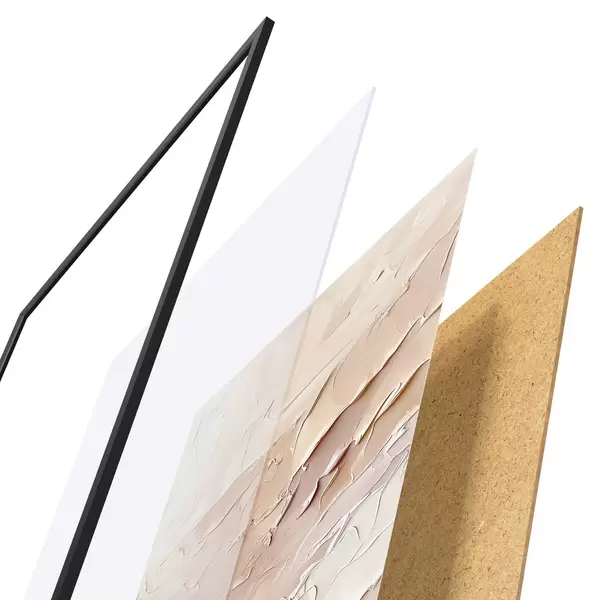 Das Poster besteht aus einem Rahmen, Plexiglas, einem gedruckten Bild und einer Rückwand aus Spanplatten. Dank der Halterungen auf der Rückseite kann das Poster sofort an die Wand gehängt werden.