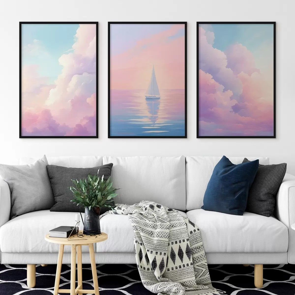 Poster Segelboot auf See vor einem Wolkenhintergrund d00619