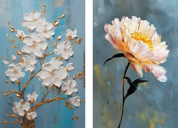 Poster Blühender Zweig und Pfingstrose: Reliefkomposition d00637