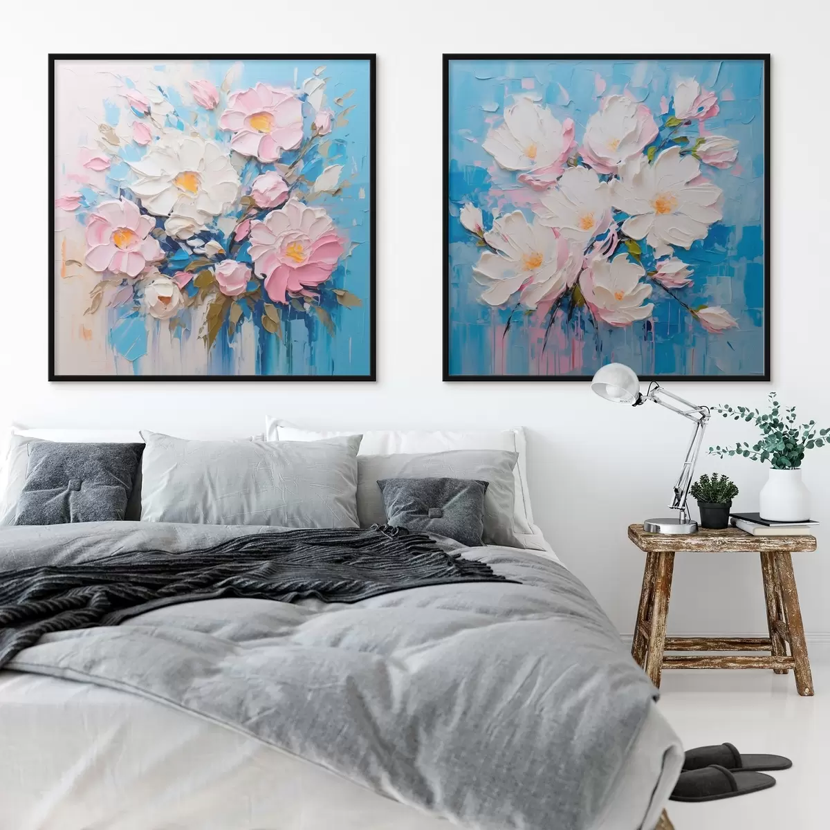 Poster Abstrakte Blumen: dekorative Komposition in Rosa- und Blautönen Nr d00643