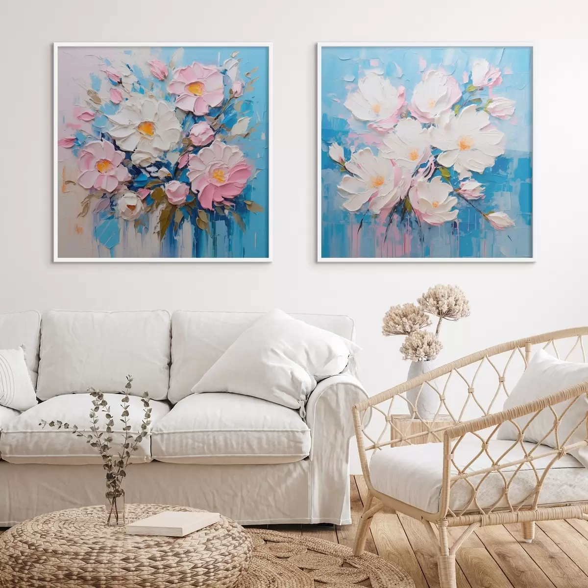 Poster Abstrakte Blumen: dekorative Komposition in Rosa- und Blautönen d00643