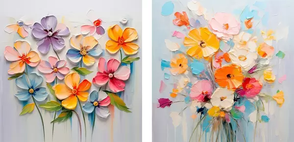 Poster Abstrakte Kompositionen aus leuchtenden Blumen in Impasto-Technik d00662