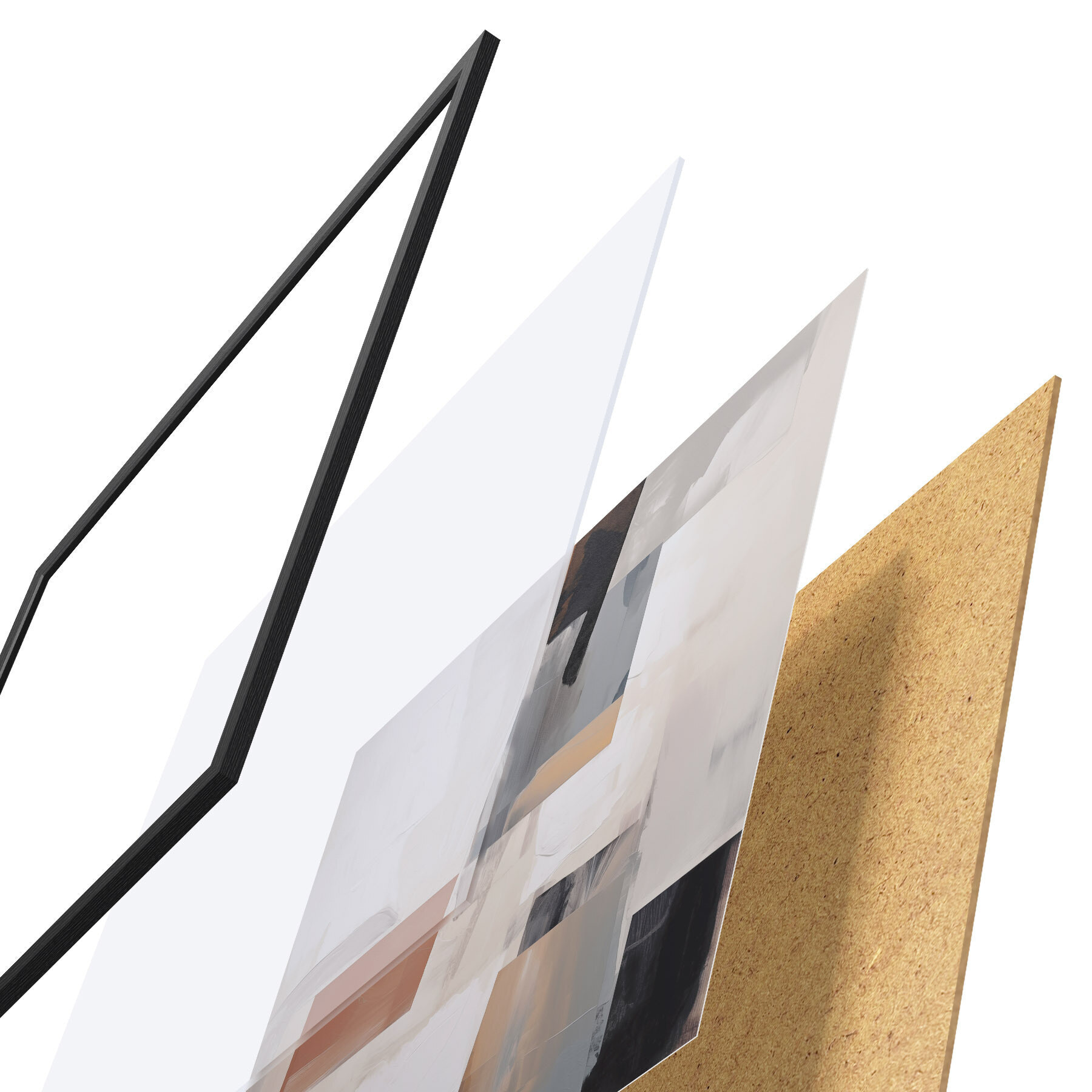 Das Poster besteht aus einem Rahmen, Plexiglas, einem gedruckten Bild und einer Rückwand aus Spanplatten. Dank der Halterungen auf der Rückseite kann das Poster sofort an die Wand gehängt werden.
