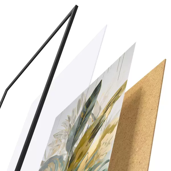 Das Poster besteht aus einem Rahmen, Plexiglas, einem gedruckten Bild und einer Rückwand aus Spanplatten. Dank der Halterungen auf der Rückseite kann das Poster sofort an die Wand gehängt werden.