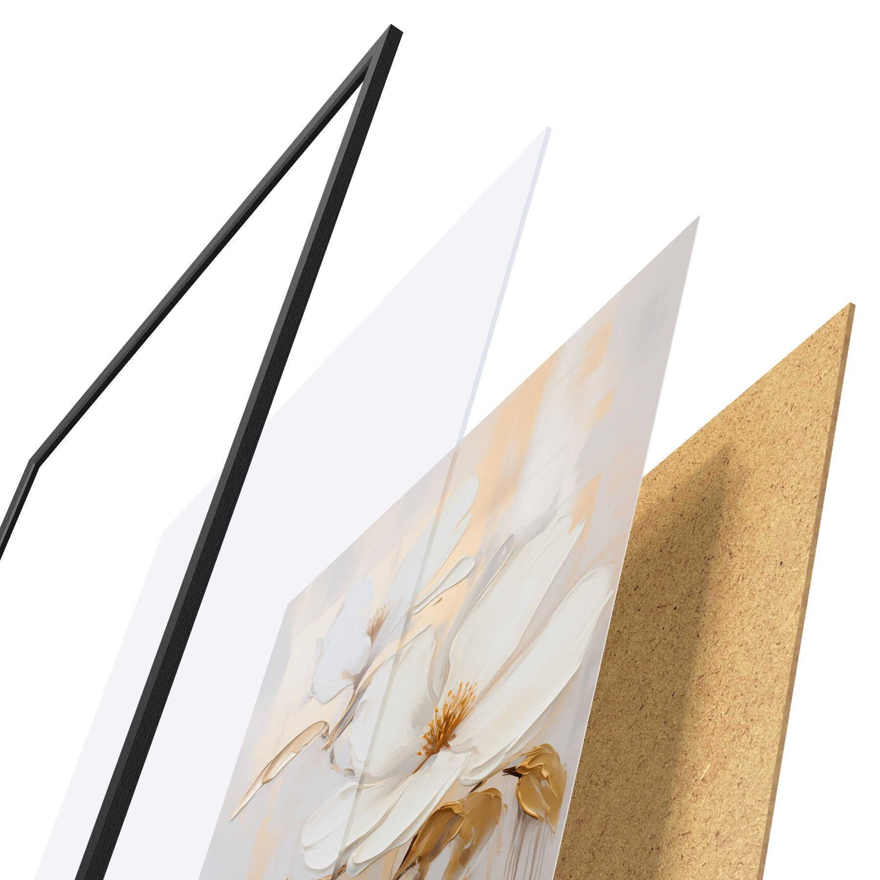 Das Poster besteht aus einem Rahmen, Plexiglas, einem gedruckten Bild und einer Rückwand aus Spanplatten. Dank der Halterungen auf der Rückseite kann das Poster sofort an die Wand gehängt werden.