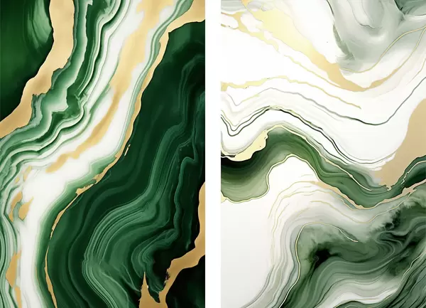 Poster Grüne und weiße Marmortexturen mit orange-gelben Adern Nr d00688
